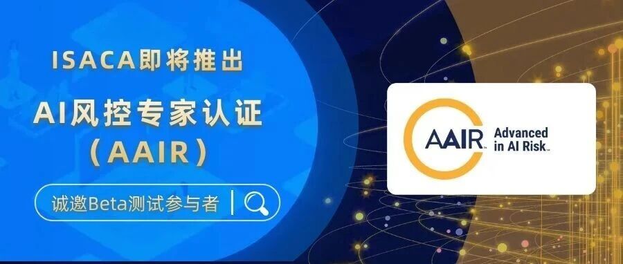ISACA即将推出AI风控专家认证(AAIR),诚邀Beta测试参与者